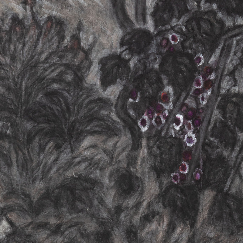 She works primarily in Sumi Ink and Japanese paint on pressed rice paper.