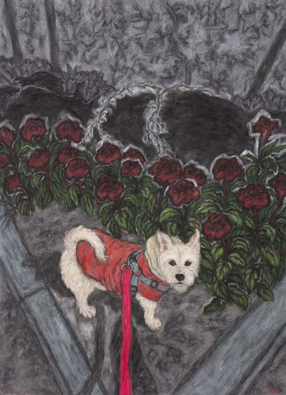 She works primarily in Sumi Ink and Japanese paint on pressed rice paper.